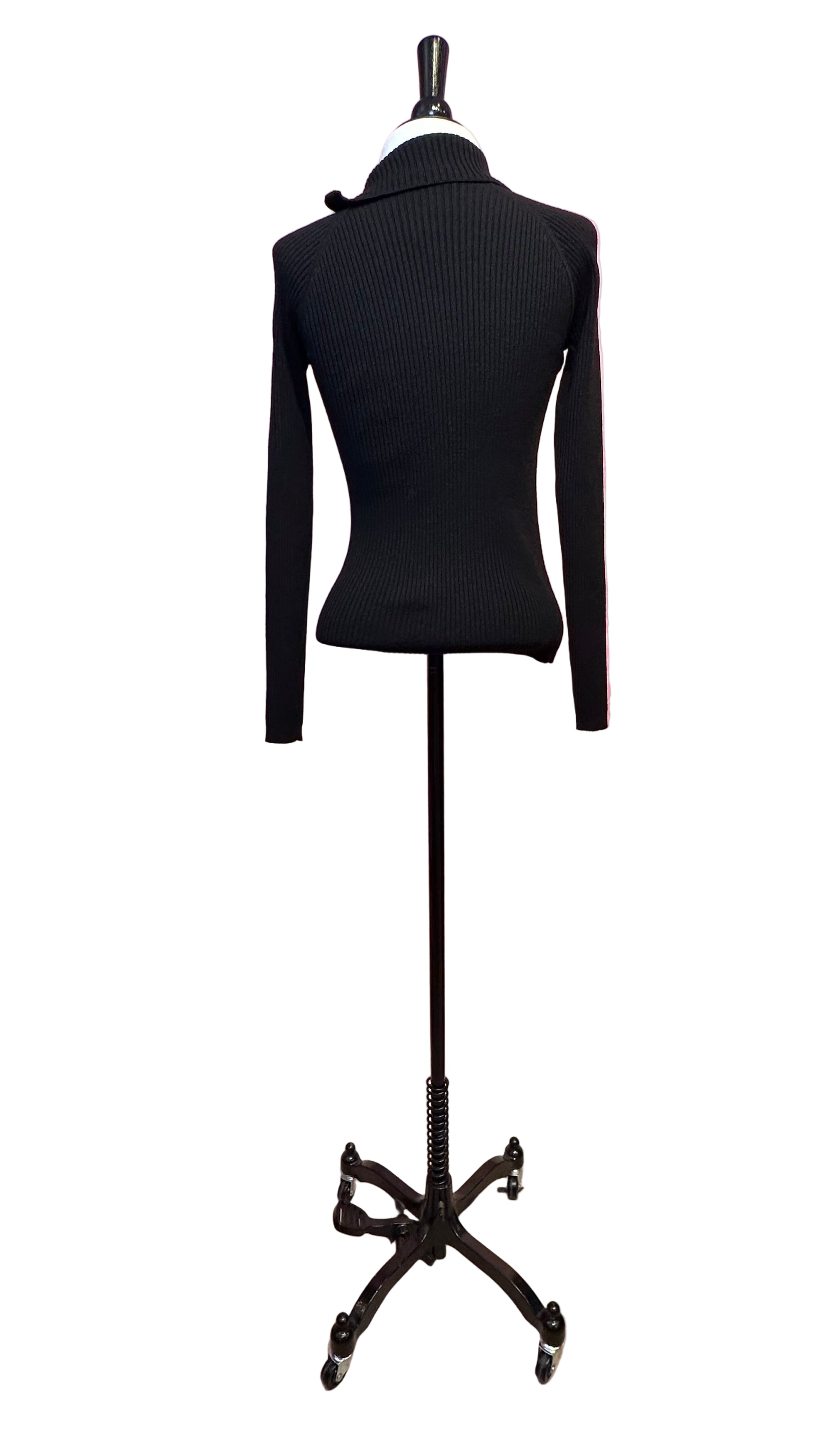 Black, wool, ribbed, knit, sweater, long sleeve, asymmetric zipper, turtleneck