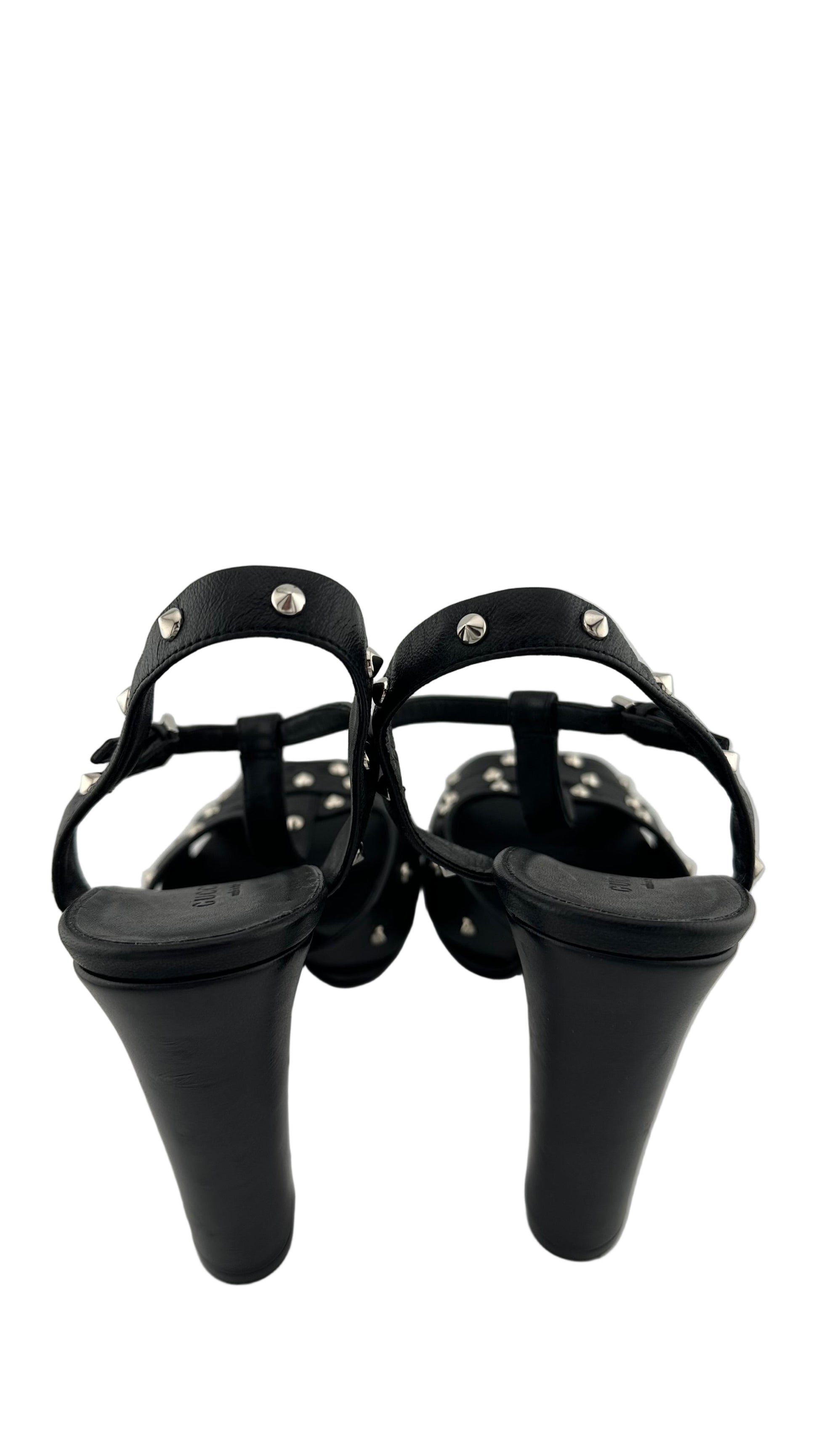 Gucci - Black Leather Studded Sandal Heel - 38.5