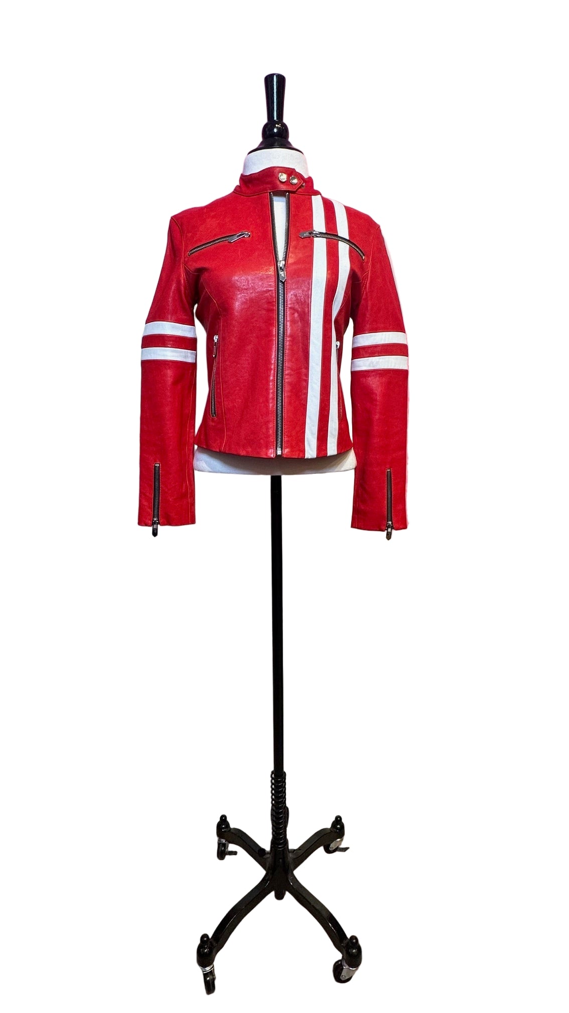 The Mighty Company - Ferrara Red Leather Cafe Racer Biker Jacket- S